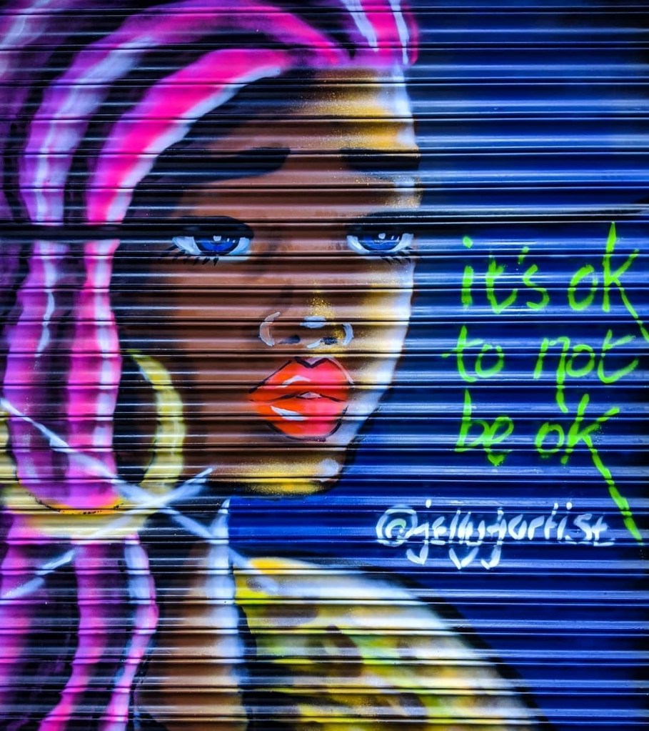 We were on a time schedule as the market had to be locked up at 10pm, so we all got down to work. I created a character with the message ‘It’s ok to not be ok’. This is a response to the gaslighting rhetoric “be positive”. People going through difficulty should not be made to feel worse by having their lived experience and feelings disregarded and be made to feel like there is something wrong with them to feel this way. If you are feeling positive that’s great, but if you are *acting* positive to make other people feel more comfortable around you thus suppressing your true emotions then that it is recipe for disaster. Stop gaslighting, start listening.