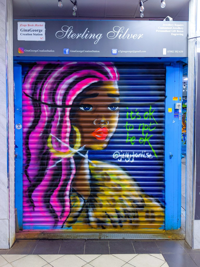 On Sunday night I lost my ‘shutter virginity’ at the Nag’s Head Market! Irony invited myself and a bunch of other artists to the Seven Sisters location for a nighttime paint jam which he arranged with the market organiser and the independent shop owners who trade there.