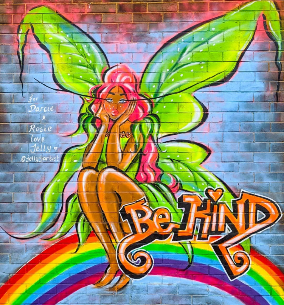 The owner Eddie was quite take with one of my past artworks which was a fairy with Be Kind written in a rainbow. He added that his daughters also loved fairies and would be over the moon if i painted one, so a fairy it was!