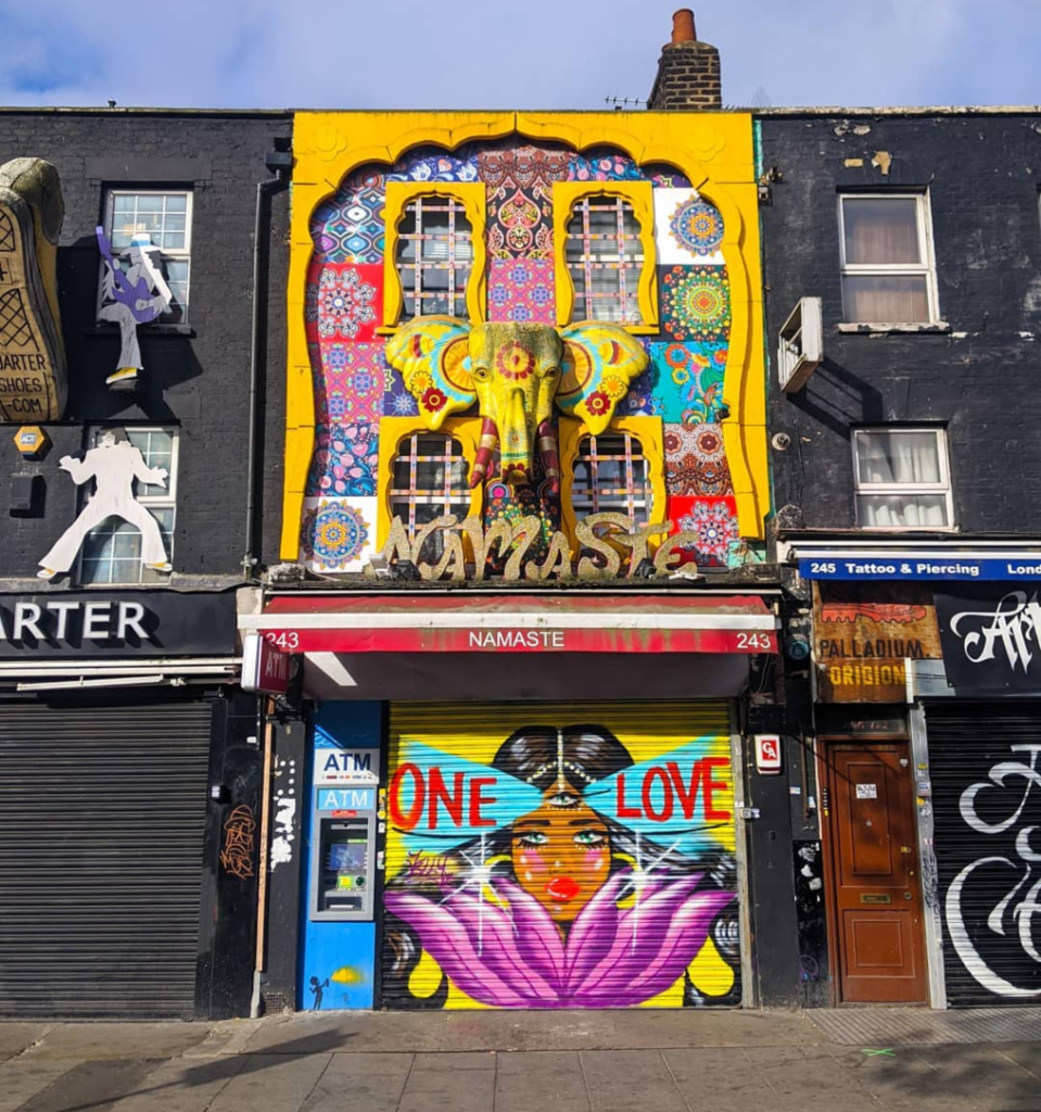 I was asked to take part in the new Camden Open Air Gallery which endeavours to uplift Camden High Street with beautiful artworks. The shops were asked to choose which artwork I would like, apparently a couple wanted my my design but the iconic Namaste won and it was the perfect match.