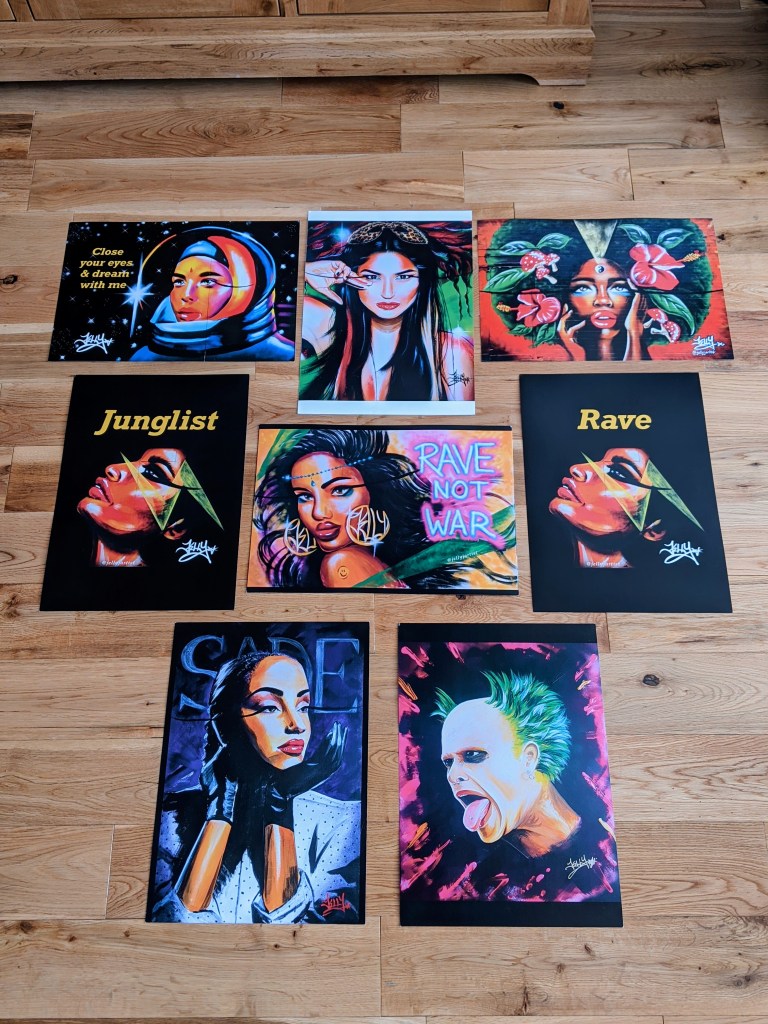 I was so excited when DJ Billy Bunter asked me to take part in the iconic Rave Story. Incredible rave on 3 floors as well as talks from the rave industry insiders, record labels merchandise and artwork, that is me alongside legend Junior Tomlin. The lucky ravers saw the launch of my new merchandise: tees, tote bags, greeting cards, prints all created from my street art murals. Awesome day thanks Billy Bunter! You can find the full range in my shop here