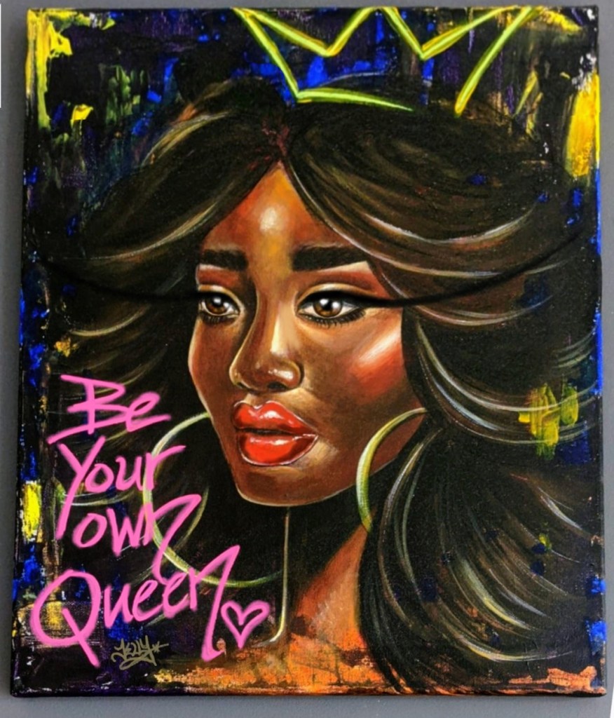 Spray paint, acrylic and gold leaf on canvas, 2020