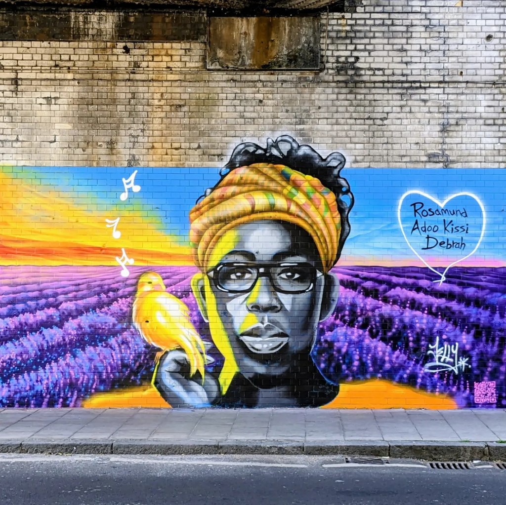 Ella And Rosamund mural for Brockley Max festival. When I was asked to be one of 3 artists painting the Black Icons Murals for Brockley Max festival 2023, I had no idea the project was inspired from my We Can’t Breathe mural 3 yrs ago!